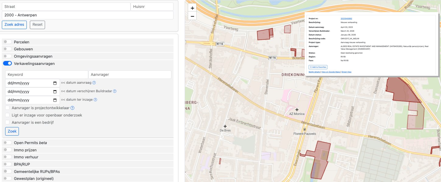 Als je geïnteresseerd bent in omgevingsaanvragen in het kader van projectontwikkeling, dan kan dat met BuildRadar. Bekijk deze video. Meer info in deze help doc.